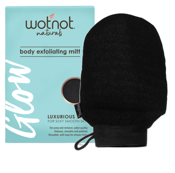 Wotnot body exfoliating mitt is a gentle and effective glove that removes toxins and dead skin cells naturally, leaving luxuriously soft skin perfectly primed for a flawless streak-free tan.
