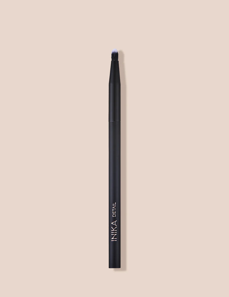 Tapered makeup brush with fluffy bristles for precise eye makeup and concealer application.