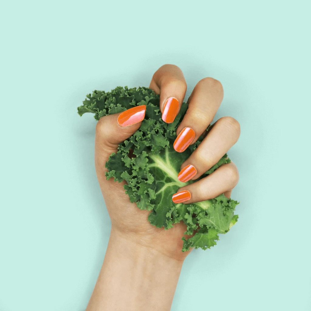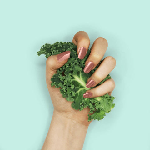 The natural, breathable 10-FREE formulation of Kale’d It Nail Lacquer contains, you guessed it, Kale Protein! This stimulates keratin production for strong and healthy nails. You’ll also find protecting Acai Berry and nourishing Oils like Coconut, Sweet Orange and Pomegranate for nail health and a super-shiny finish to lock in colour.